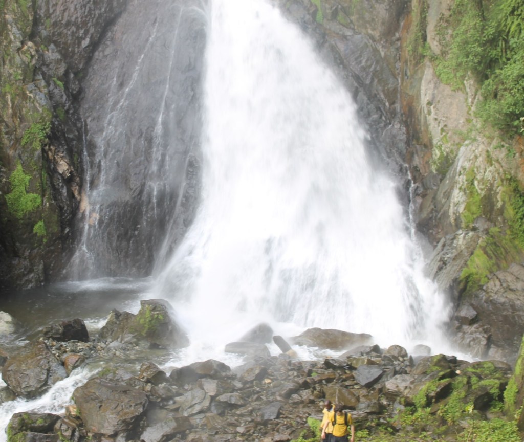 Through the hills to a thick forest we started hearing the roaring sounds of the waterfalls mixed with sounds of wild birds producing sweet melodies in space. We had so many streams of water to cross before reaching to our destination. Although we were very tired, when we reached the place everyone on the team danced with jubilation.