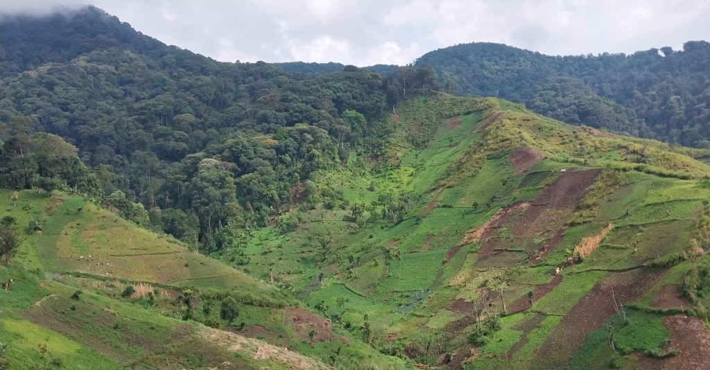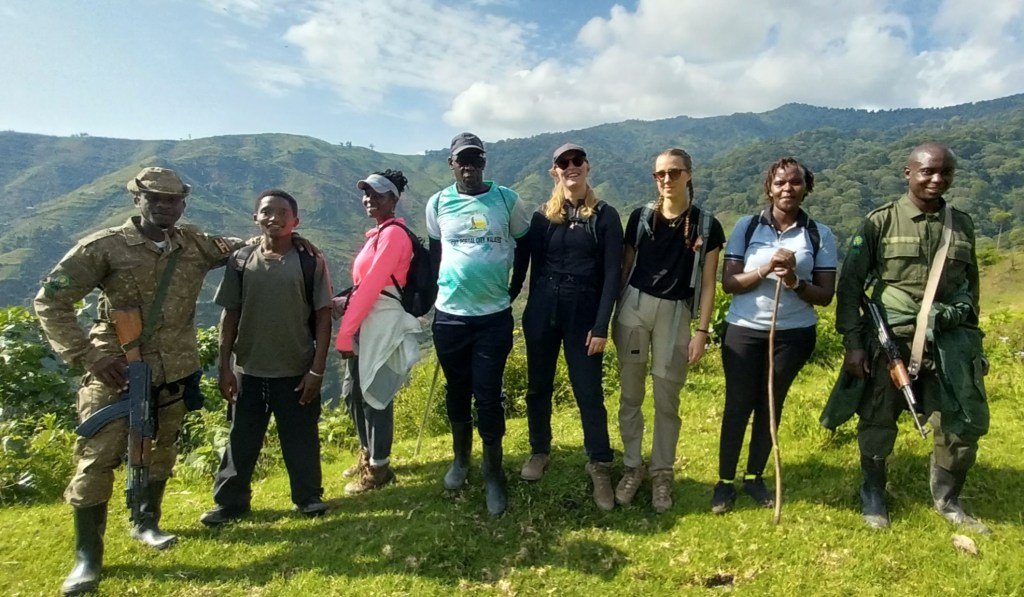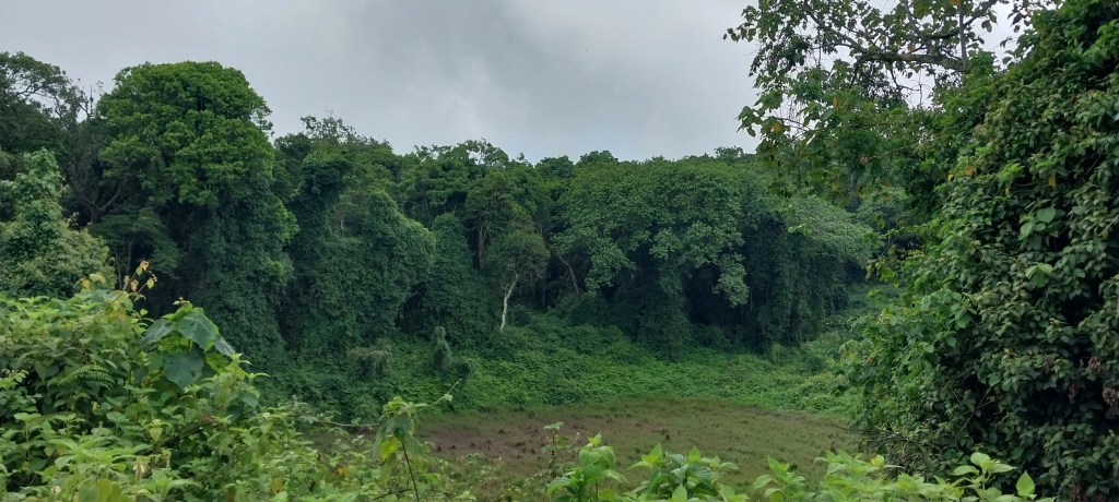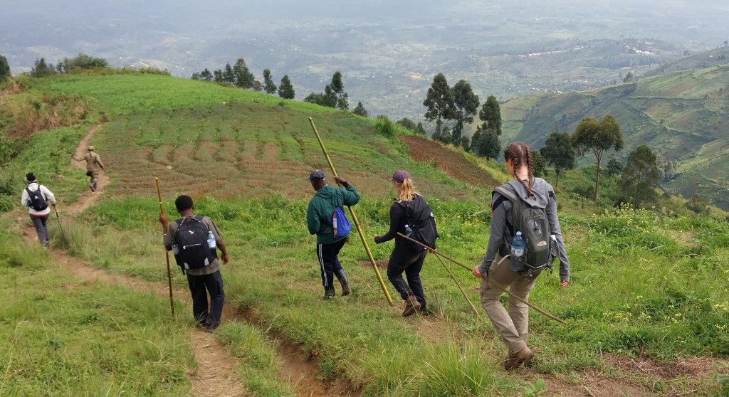Starting the hike through the community area to thick forest and savanna areas and completing in a different direction in another community area. Along the way, we met several people, women going to collect firewood from the forest, other people crossing to or from Bwamba in Bundibugyo district, and poachers running away from our site.