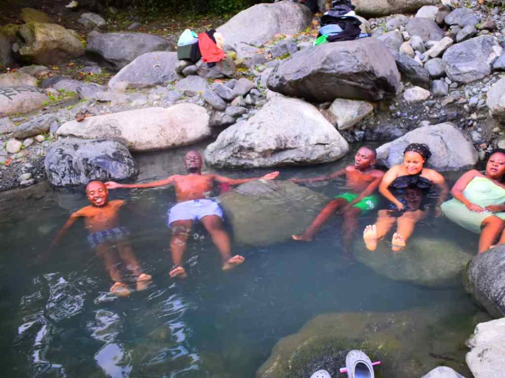 On the hot spring we freely got bath in this naturally heated pool besides the cold frozen river Mubuku on its journey from the Rwenzori glaciers. The contract between the two left us with a real feeling of being in the true nature of Rwenzori.